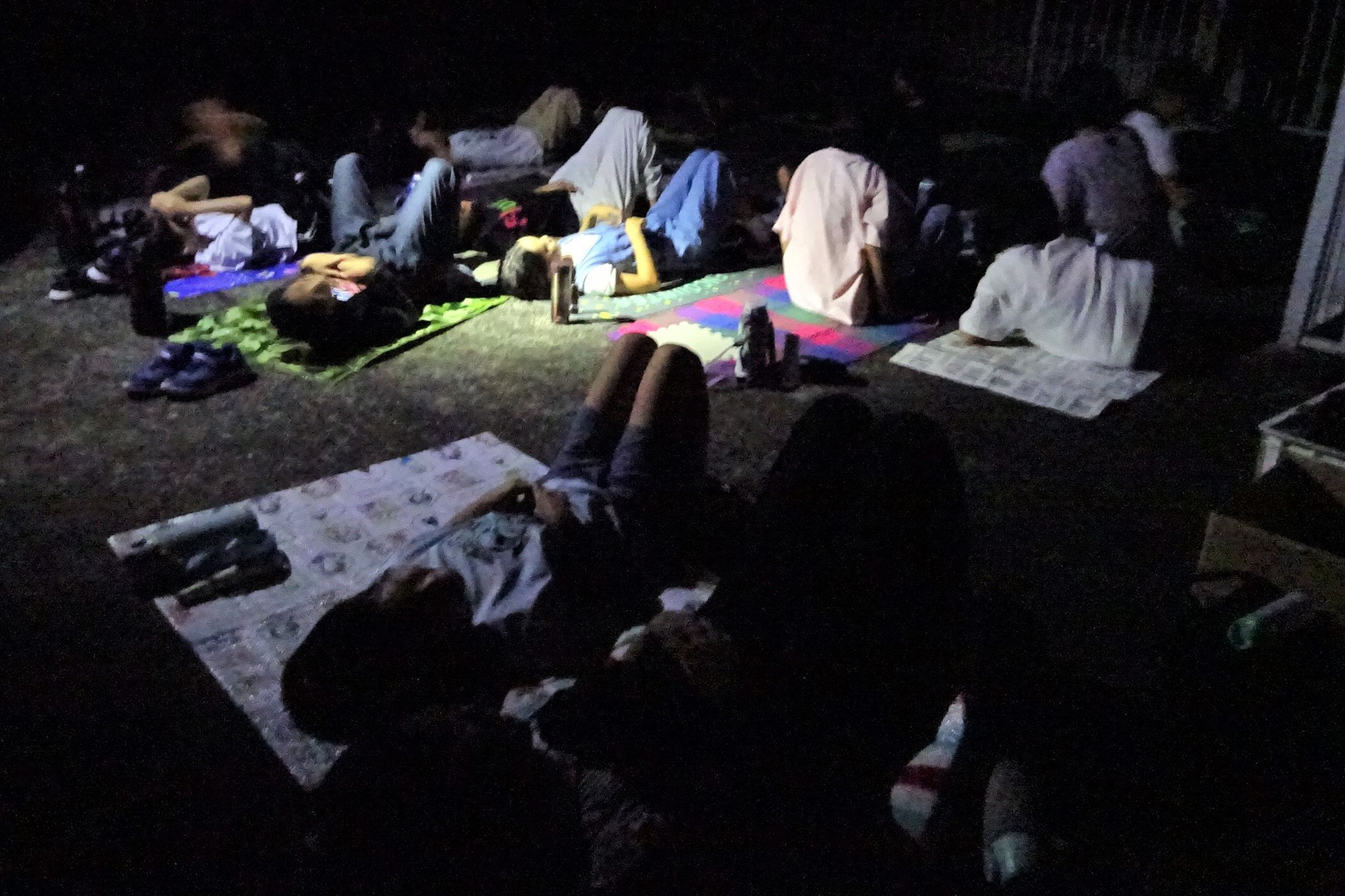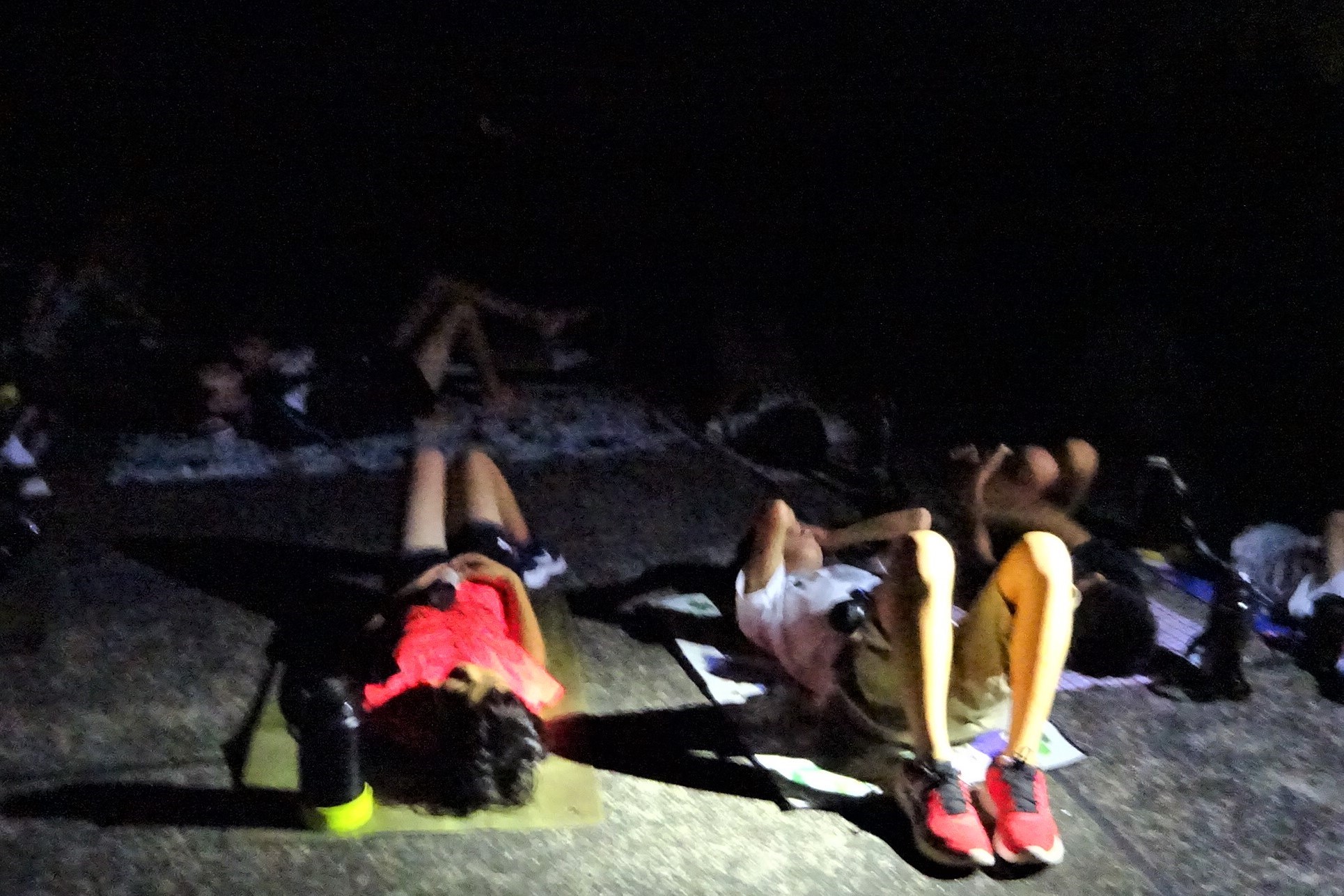 19時を過ぎ、いよいよ星空観察学習会の開始です。建物の屋上に上がり、満点の星空を観察…の予定でしたが、なかなか雲が切れません。雲の切れ間を探しながら観察を進めました。8月に見られる星座のこと、夏の大三角、飛行機や人工衛星と流れ星との違い、月など、たくさんのことを学習しました。天体望遠鏡で月や土星を観察しました。子どもたちは、宇宙の魅力を感じながら空を見続けましたが、なかなか星はながれてくれません。ついに、第1次の観察会終了の時刻になりました。残念ながら誰も流れ星は見れませんでした。日帰りで参加をしている子どもが帰宅するのに合わせて、一度部屋に戻り始めました。すると、「流れた!」指導者からの声が。今日第1回目の流れ星が見えました。しかしながら、子どもたちは誰も見れなかったのでした。