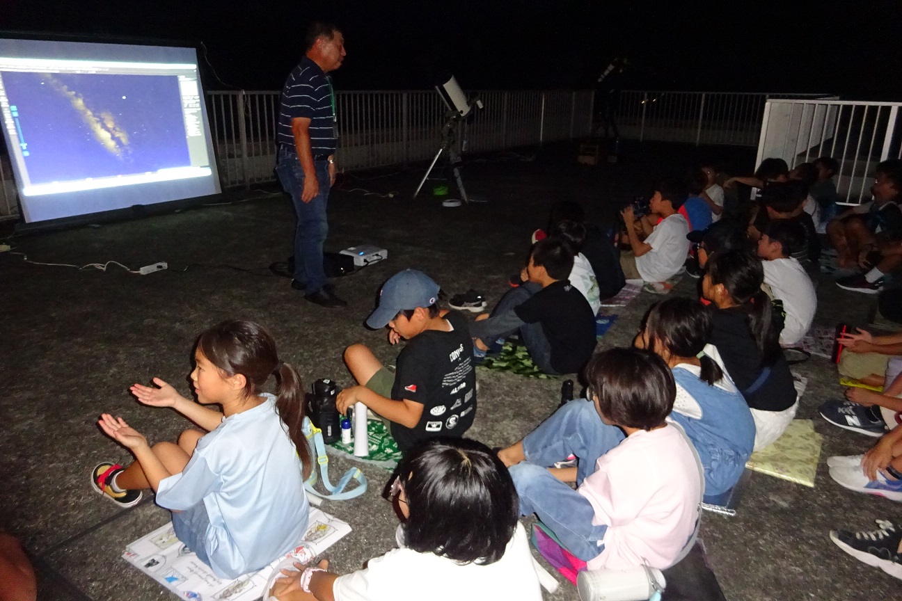 8月12日~13日、第3回自然科学教室が開催されました。今回のテーマは、星空観察。毎年この時期に見られるペルセウス座流星群の観察を、国立青少年交流の家に宿泊して観察しています。今回の参加者は、児童42名、指導者10名、合計52名でした。なお、今回の自然科学教室実施に当たっては、桝山教育振興会の補助を得て実施しております。